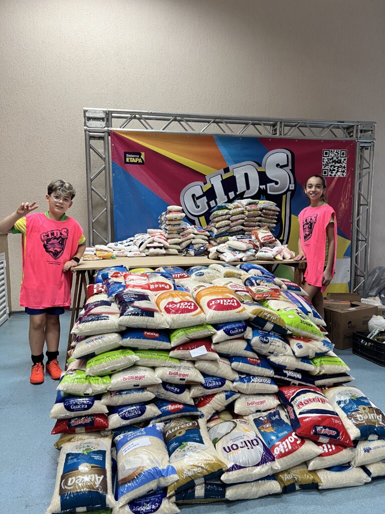 Como acontece todos os anos, o GIDS 2025 também foi marcado por uma ação solidária de grande impacto. Cada equipe mobilizou alunos e famílias para arrecadar alimentos e produtos de higiene, somando mais de 2 toneladas de doações. Todo o material foi destinado a instituições parceiras do colégio: Alimentando um Sorriso, Santa Casa de Nazaré e Instituto Luiz Braille.
