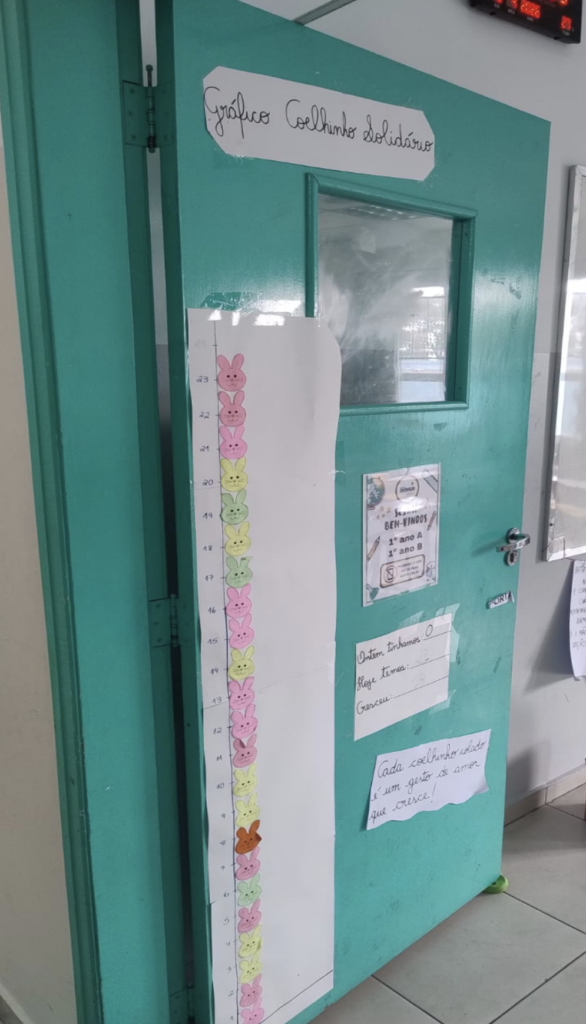 Para estimular a participação e tornar o processo mais concreto para os alunos, os professores adotaram estratégias pedagógicas criativas. No Ensino Fundamental I da Unidade I do colégio, gráficos de metas ilustrados com coelhinhos foram utilizados como ferramenta visual de acompanhamento. A cada nova doação, o avanço no gráfico era celebrado pela turma, reforçando o senso de progresso coletivo.
