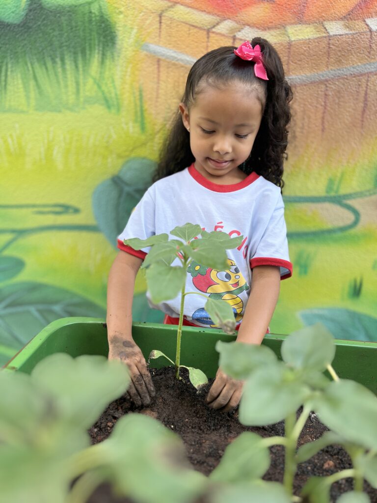 Ao valorizar a horta escolar, oferecemos às crianças a oportunidade de experimentar o mundo em sua forma mais simples e verdadeira. Elas aprendem a cuidar, a esperar, a compartilhar e a se encantar com o processo da vida. Mais do que verdura e fruta, colhem autonomia, consciência ambiental e o prazer de aprender de maneira ativa. E é exatamente nesse contato direto com a natureza que a infância floresce com mais cores, sentidos e significados.